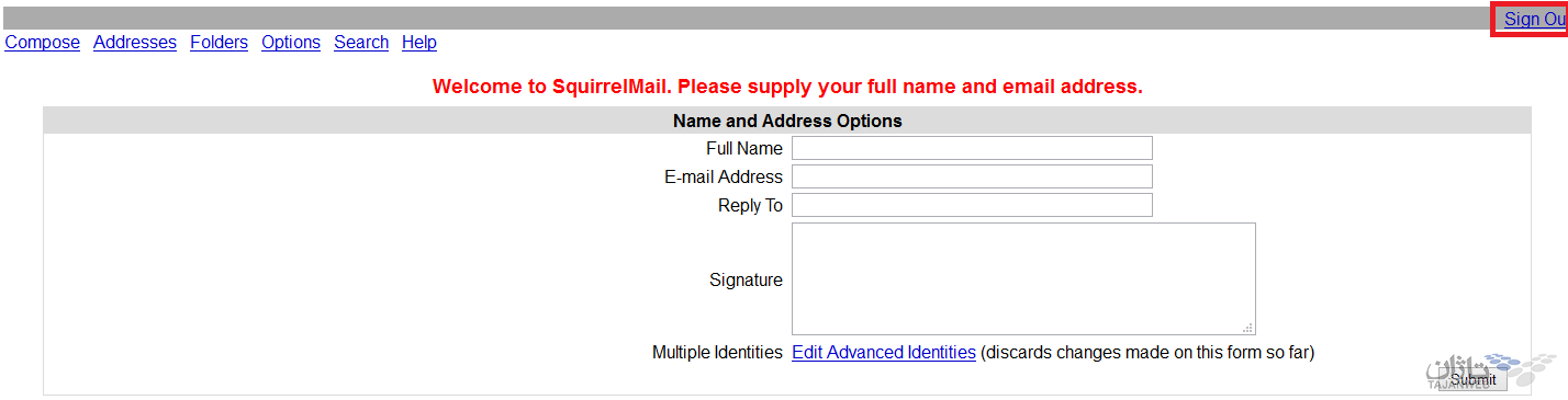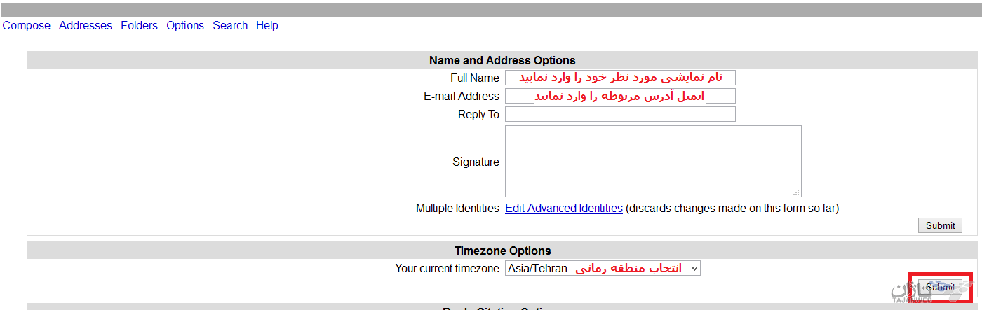 3- هم اکنون موفق به لاگین به وب میل شده اید. حال کافیست اطلاعات مورد نظر را جهت استفاده از این اکانت در صفحه ی لود شده وارد و در انتها برروی دکمه submit کلیک نمایید.