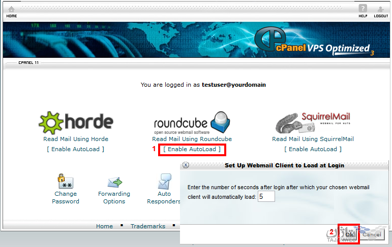 اگر قصد دارید همیشه از یک وب میل خاص استفاده نمایید کافیست گزینه [ Enable AutoLoad ] مرتبط با وب میل مورد نظر خود را انتخاب و سپس برروی دکمه ok کلیک نمایید. بعداز انجام این تنظیم می باید گزینه ی "Read Mail Using …." مرتبط با وب میل مورد نظر را نیز (تنها برای یکبار) جهت ورود انتخاب نمایید. (در این دستورالعمل وب میل RoundCube مد نظر می باشد)