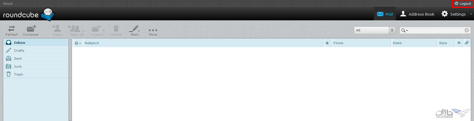 3- هم اکنون موفق به لاگین به وب میل شده اید. برای خروج نیز می توانید برروی دکمه Logout کلیک نمایید.